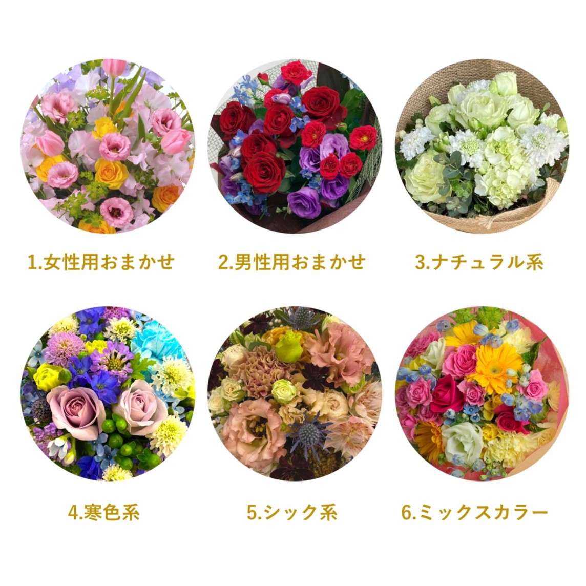 1.女性用おまかせ 2.男性用おまかせ 3.ナチュラル系 4.寒色系 5.シック系 6.ミックスカラー 7.プロにおまかせ