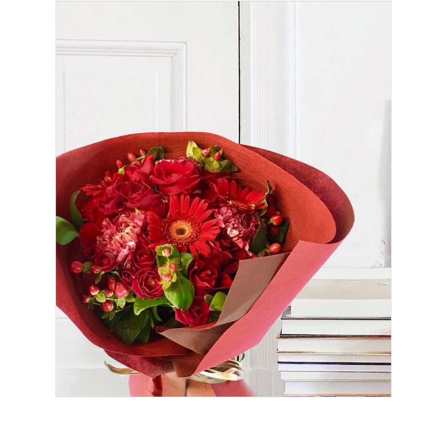 レギュラー赤系ブーケ (bouquet20) 販売価格(税込)¥5,500在庫状態 : 在庫有り■ サイズ(約):高さ35×幅30cm ■ コメント:花量もあり素敵なブーケ花束 ■ 品番:花束20 ★横浜市中区西区南区への配達に限ります。 ★原則前日17時までの申し込みとなります。 ★お届け日当日の申し込みは、ご注文の前にお電話にてお問い合わせください。 配達状況を確認します。TEL:045-641-3057 ※季節・仕入れ状況により花材や資材が異なることがありますご了承ください。 ※天候・受注状況によりご注文を受けられない場合があります。 数量