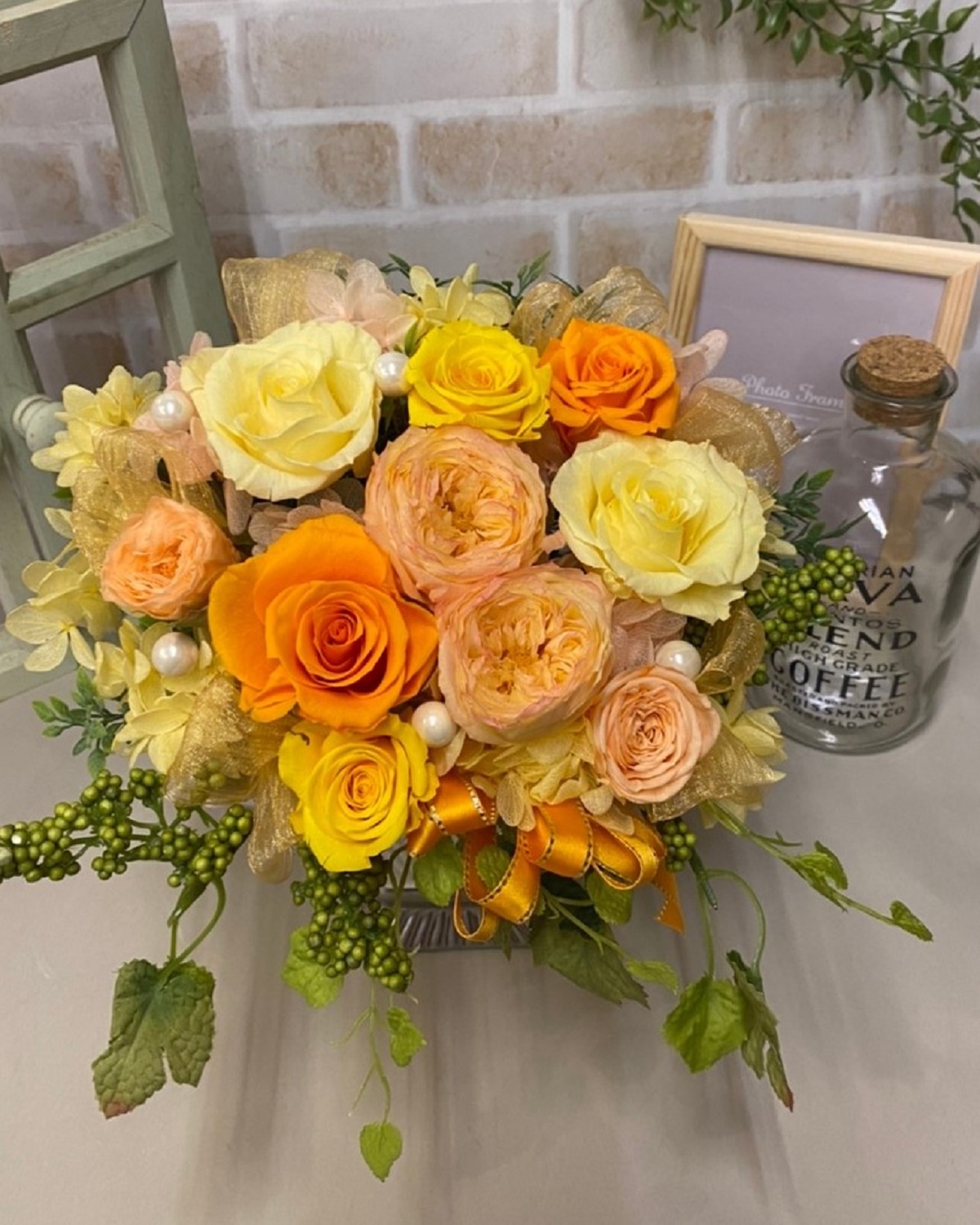 スペシャル黄色オレンジ系プリザーブドフラワー