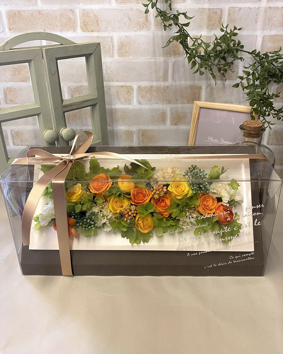 ハイクオリティ黄色オレンジ系プリザーブドフラワー (preser22) 販売価格(税込)¥13,200在庫状態 : 在庫有り■ サイズ(約):高さ13×幅30cm ■ コメント:壁にも掛けられるおしゃれプリザーブド ■ 品番:プリザーブドフラワー22 ★横浜市内への配達に限ります。 ★原則前日12時までの申し込みとなります。 ★横浜市中区西区南区へのお届けの場合は、当日配達できる場合がございます。 お電話にてご確認ください。 TEL:045-641-3057 ※季節・仕入れ状況により花材や資材が異なることがありますご了承ください。 ※天候・受注状況によりご注文を受けられない場合があります。 数量