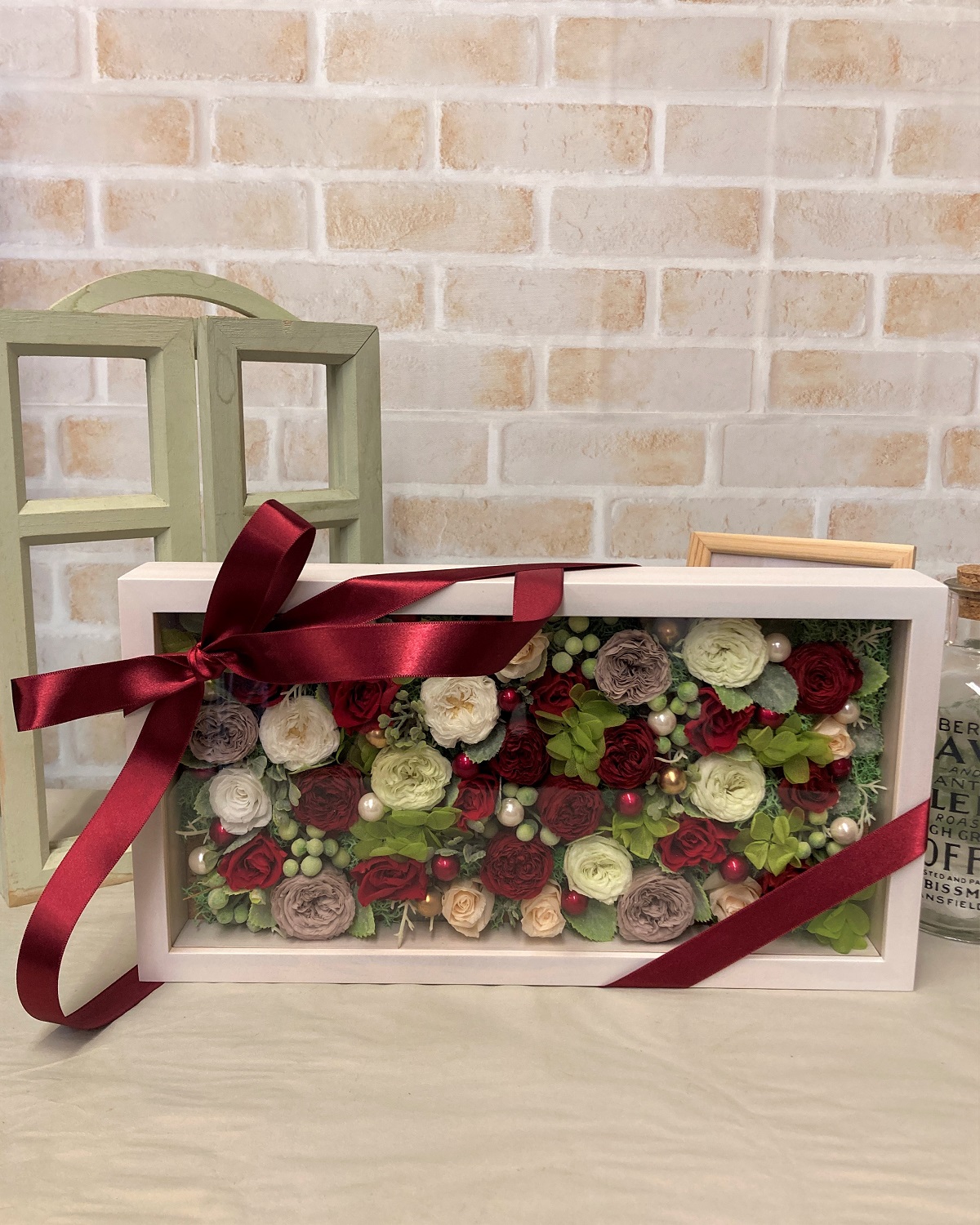 ■ コメント:フレームいっぱいにプリザーブドフラワーを敷き詰めた商品。