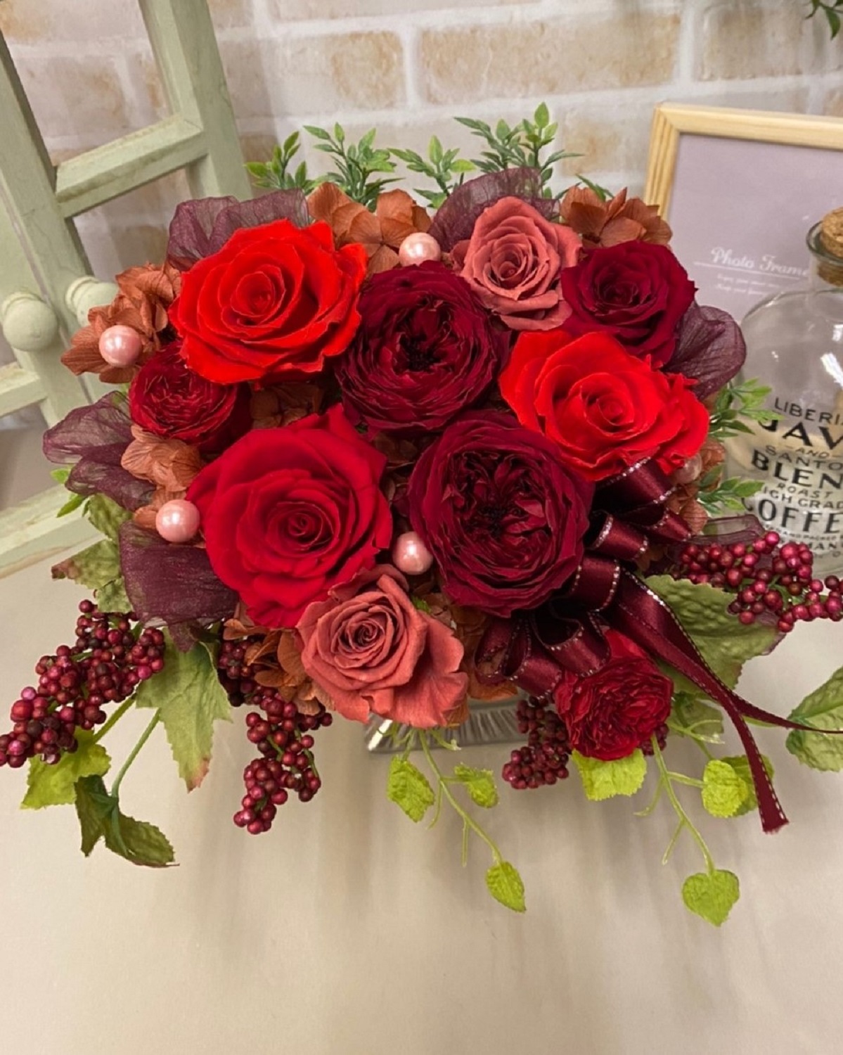 スペシャル赤系プリザーブドフラワー (preser15) 販売価格(税込)¥11,000在庫状態 : 在庫有り■ サイズ(約):高さ30×幅22cm ■ コメント:大輪の花を使ったボリュームある商品 ■ 品番:プリザーブドフラワー15 ★横浜市内への配達に限ります。 ★原則前日12時までの申し込みとなります。 ★横浜市中区西区南区へのお届けの場合は、当日配達できる場合がございます。 お電話にてご確認ください。 TEL:045-641-3057 ※季節・仕入れ状況により花材や資材が異なることがありますご了承ください。 ※天候・受注状況によりご注文を受けられない場合があります。 数量