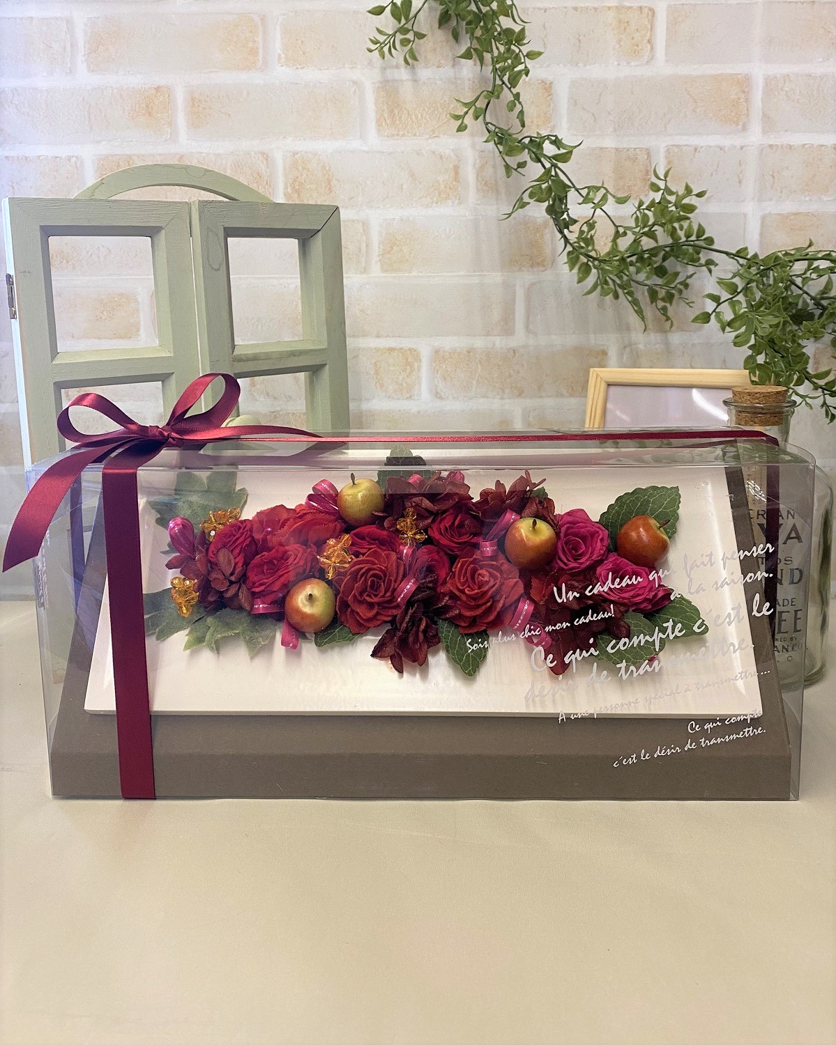 ハイクオリティ赤系プリザーブドフラワー (preser20) 販売価格(税込)¥13,200在庫状態 : 在庫有り■ サイズ(約):高さ13×幅30cm ■ コメント:壁にも掛けられるおしゃれプリザーブド ■ 品番:プリザーブドフラワー20 ★横浜市内への配達に限ります。 ★原則前日12時までの申し込みとなります。 ★横浜市中区西区南区へのお届けの場合は、当日配達できる場合がございます。 お電話にてご確認ください。 TEL:045-641-3057 ※季節・仕入れ状況により花材や資材が異なることがありますご了承ください。 ※天候・受注状況によりご注文を受けられない場合があります。 数量
