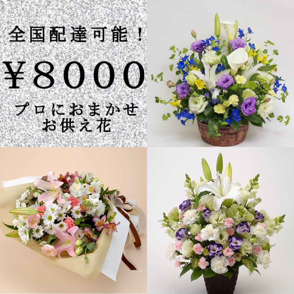 1.花束、プロにおまかせ 2.花束、白一色 3.花束、白メイン青&紫系