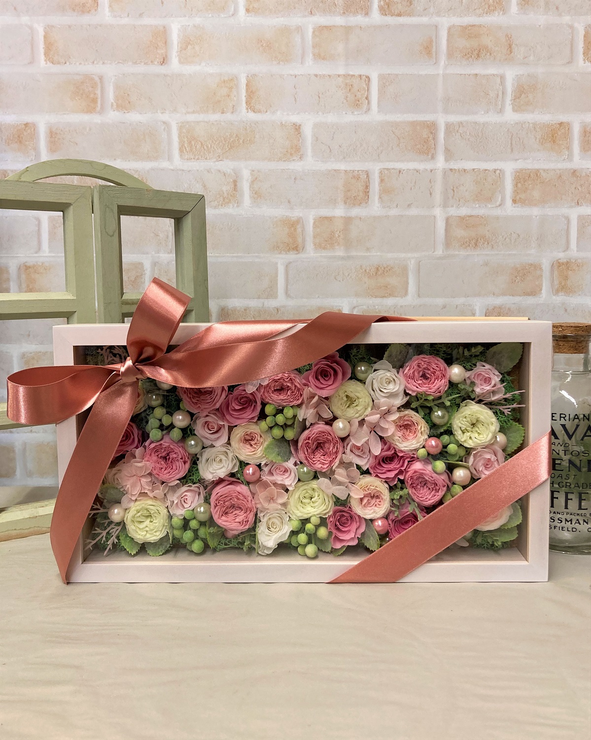 ■ コメント:フレームいっぱいにプリザーブドフラワーを敷き詰めた商品。