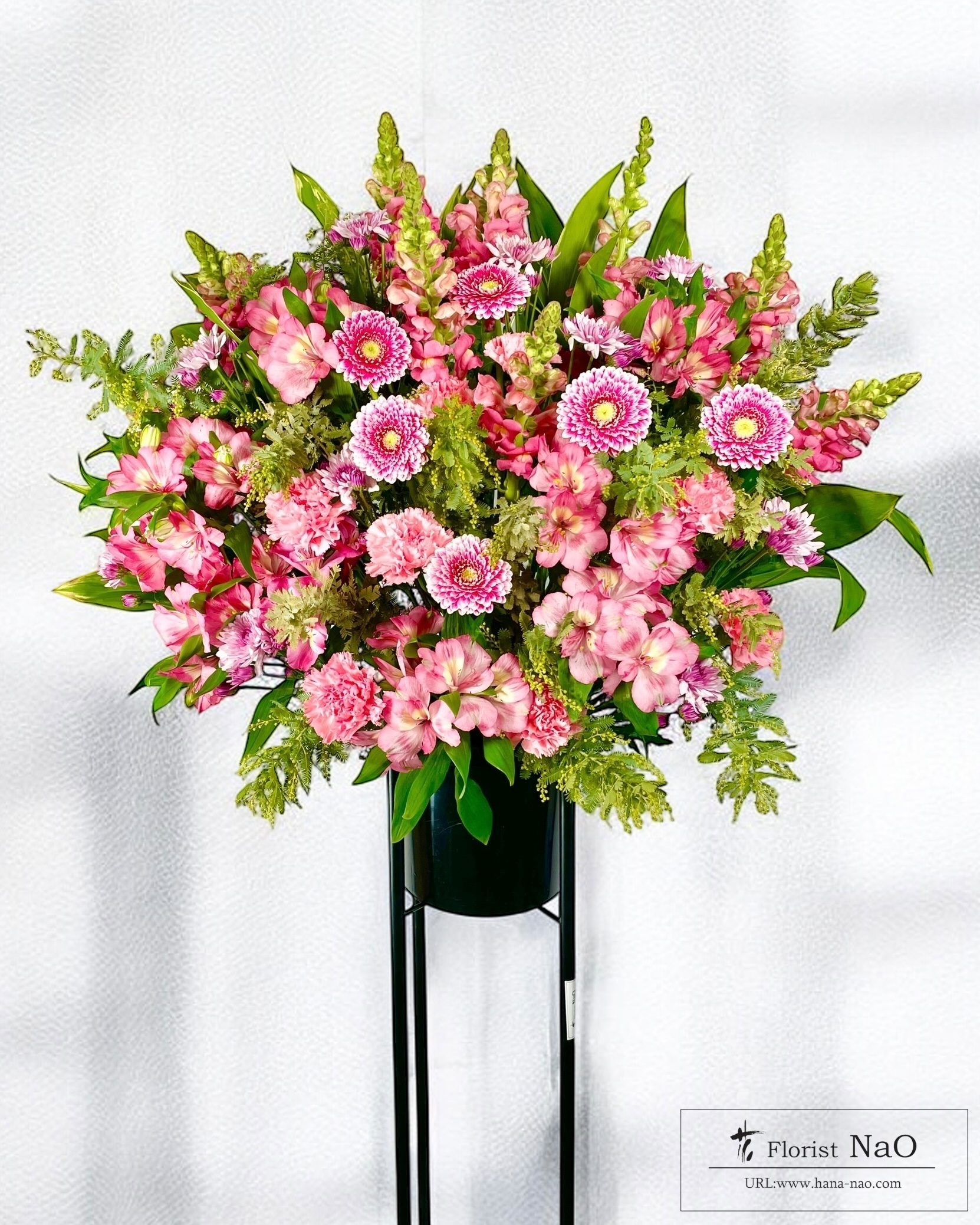 ピンク系1段スタンド花 (stand102) 販売価格(税込)¥19,800在庫状態 : 在庫有り■ サイズ(約):高さ185×幅85×奥行50cm ■ コメント:一般的なスタンド花 ■ 品番:スタンド花102 ★横浜市内への配達に限ります。 ★原則当日12時までの申し込みとなります。 ★お届け日当日の申し込みは、ご注文の前にお電話にてお問い合わせください。 配達状況を確認します。TEL:045-641-3057 ※季節・仕入れ状況により花材や資材が異なることがありますご了承ください。 ※天候・受注状況によりご注文を受けられない場合があります。 数量