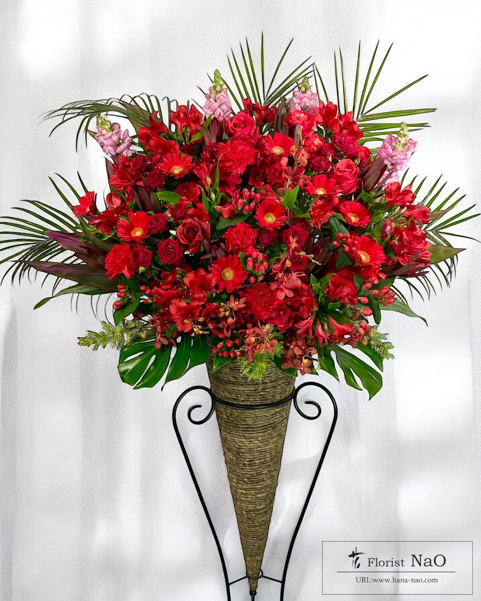 赤系コーンスタンド花 (stand113) 販売価格(税込)¥24,200在庫状態 : 在庫有り■ サイズ(約):高さ175×幅90×奥行65cm ■ コメント:コーン型でおしゃれなスタンド花 ■ 品番:スタンド花113 ★横浜市内への配達に限ります。 ★原則当日12時までの申し込みとなります。 ★お届け日当日の申し込みは、ご注文の前にお電話にてお問い合わせください。 配達状況を確認します。TEL:045-641-3057 ※季節・仕入れ状況により花材や資材が異なることがありますご了承ください。 ※天候・受注状況によりご注文を受けられない場合があります。 数量