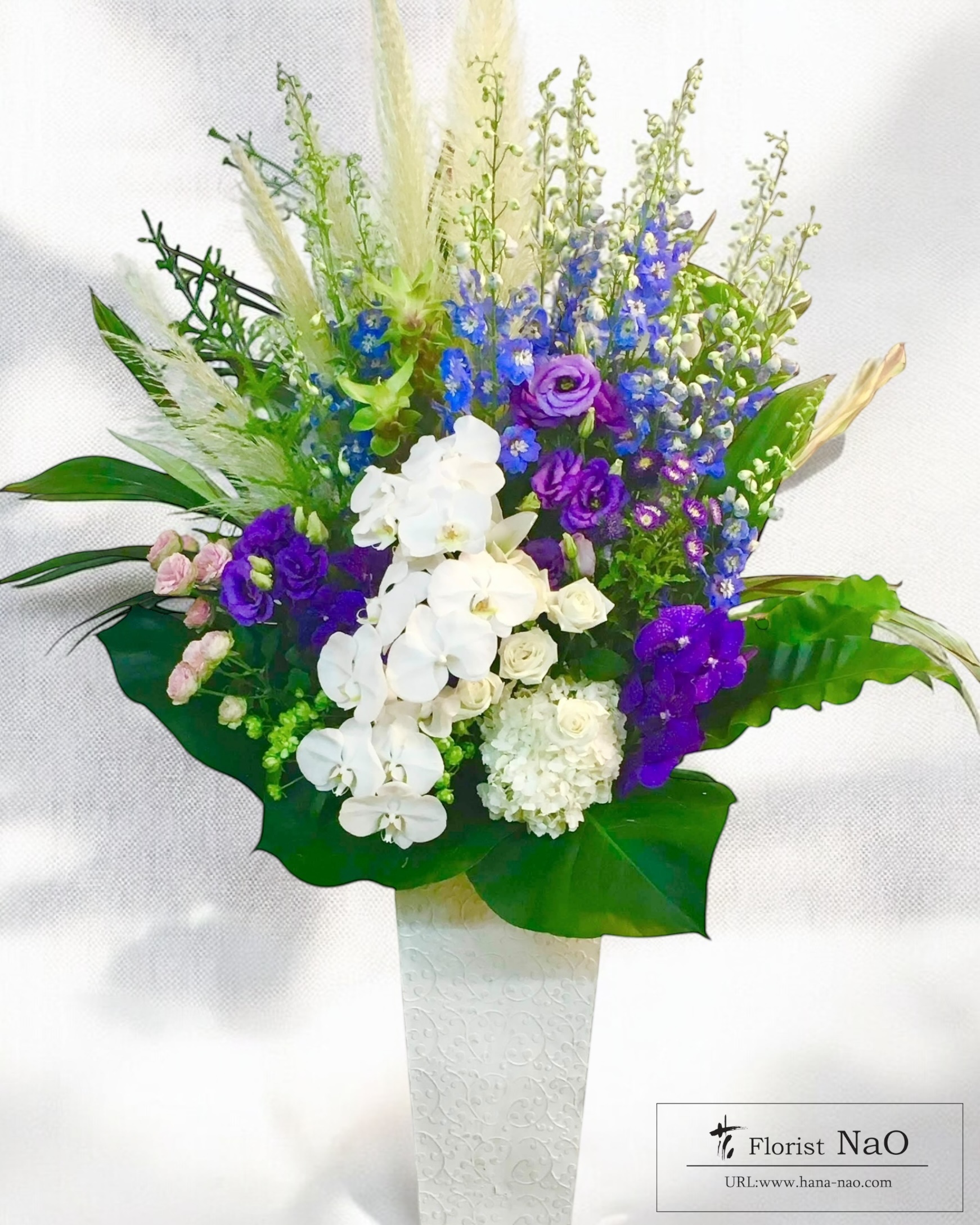 青・紫系スチールスタンド花 (stand134) 販売価格(税込)¥33,000在庫状態 : 在庫有り■ サイズ(約):高さ185×幅90×奥行65cm ■ コメント:高級感のあるおしゃれスタンド花 ■ 品番:スタンド花134 ★横浜市内への配達に限ります。 ★原則当日12時までの申し込みとなります。 ★お届け日当日の申し込みは、ご注文の前にお電話にてお問い合わせください。 配達状況を確認します。TEL:045-641-3057 ※季節・仕入れ状況により花材や資材が異なることがありますご了承ください。 ※天候・受注状況によりご注文を受けられない場合があります。 数量