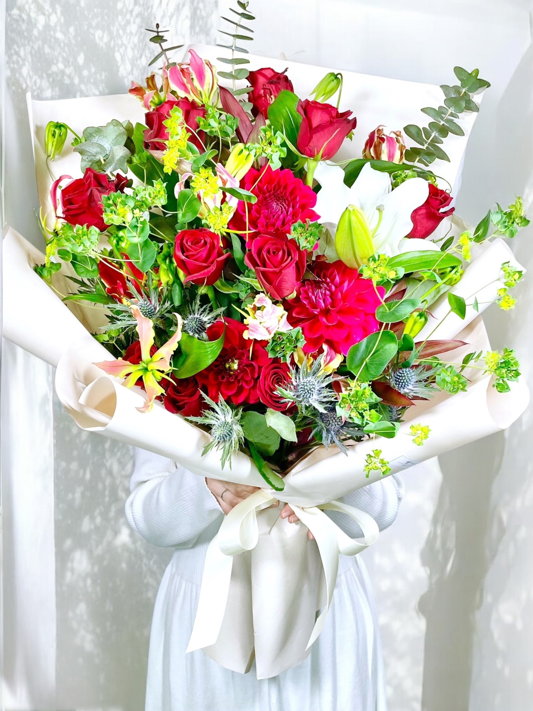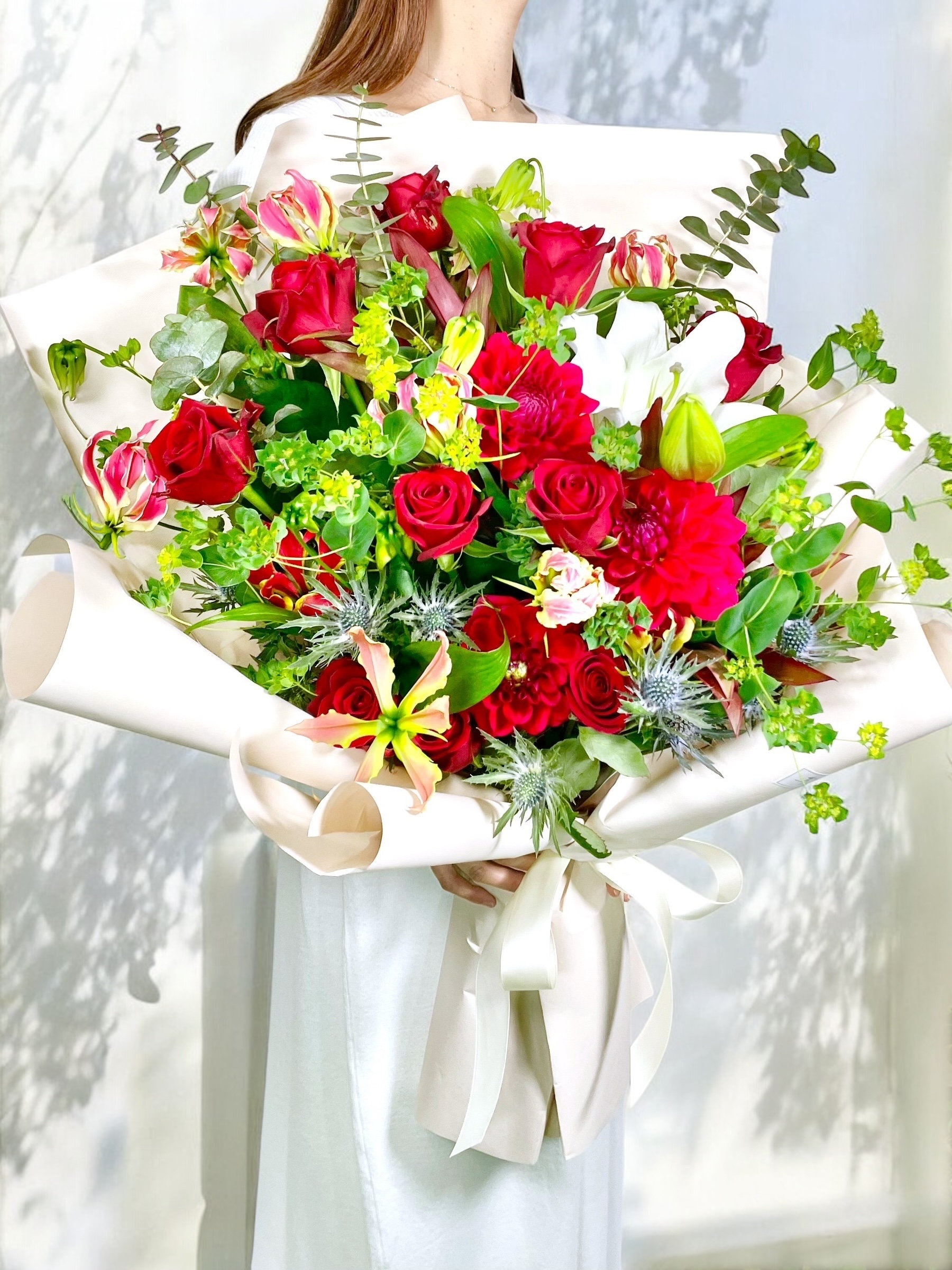 ■ コメント:特別な日に相応しい、両手で抱えるサイズの花束です。