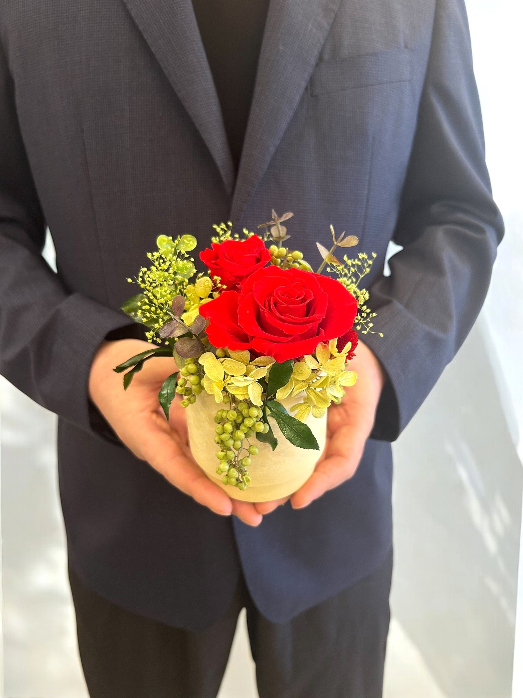 ■ コメント:生花に特殊な保存処理を施し、長期間飾れるよう加工したプリザーブド商品。