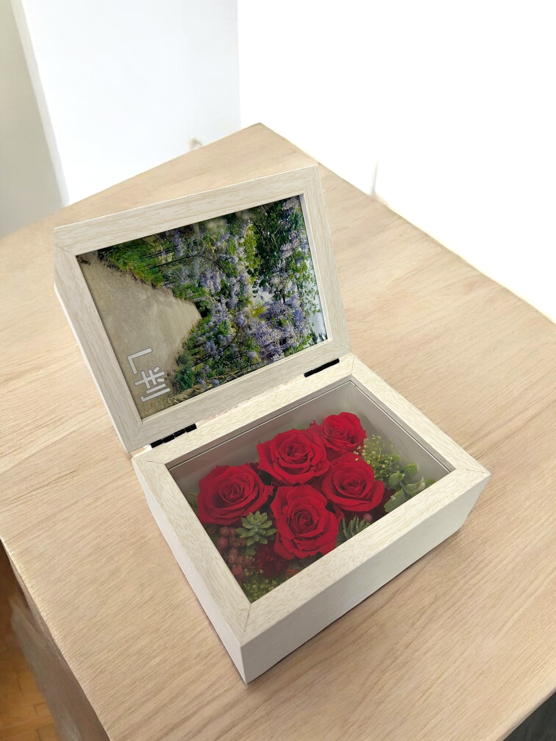 ■ コメント:生花に特殊な保存処理を施し、長期間飾れるよう加工したプリザーブド商品。
