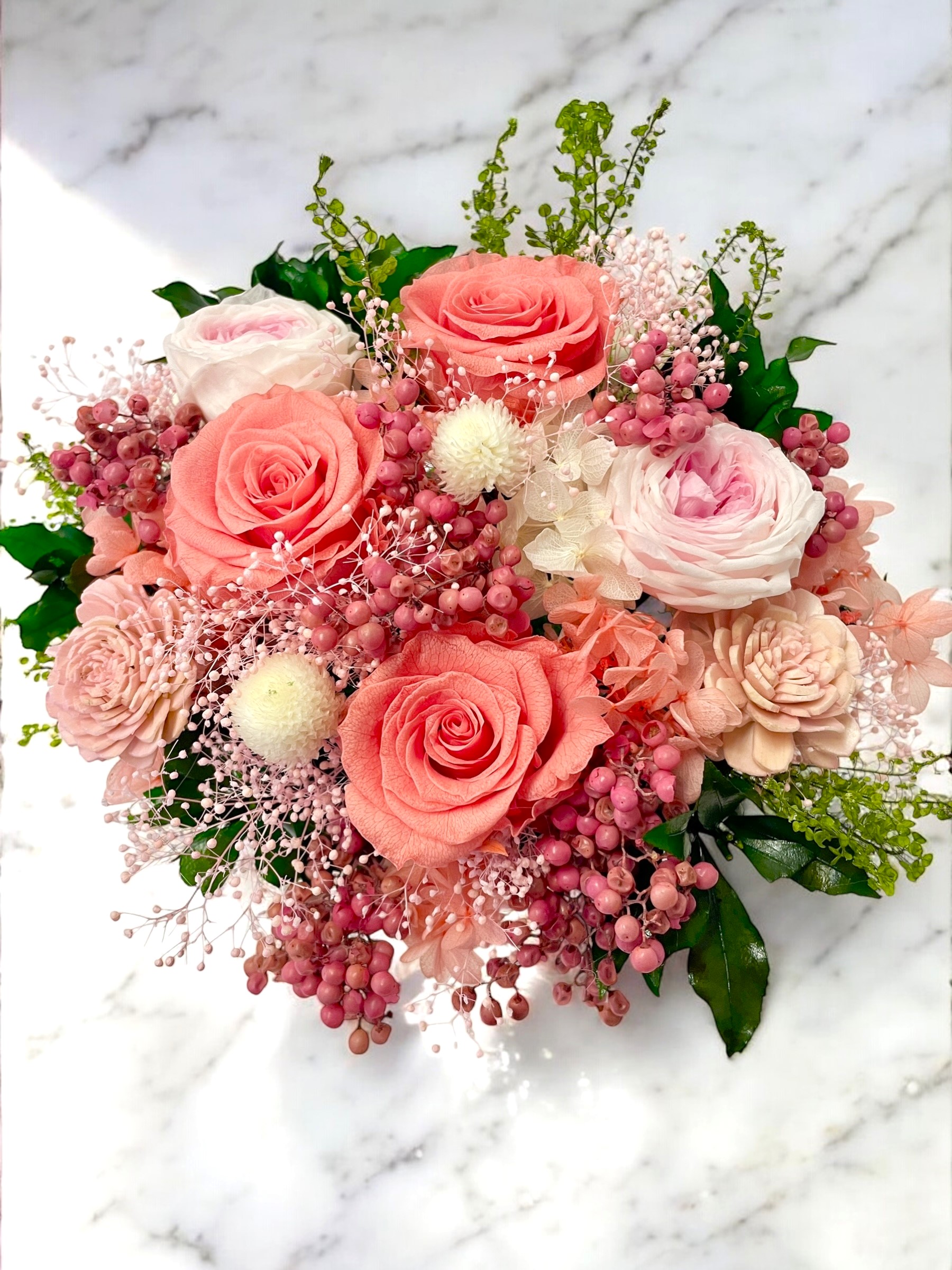■ コメント:生花に特殊な保存処理を施し、長期間飾れるよう加工したプリザーブド商品。
