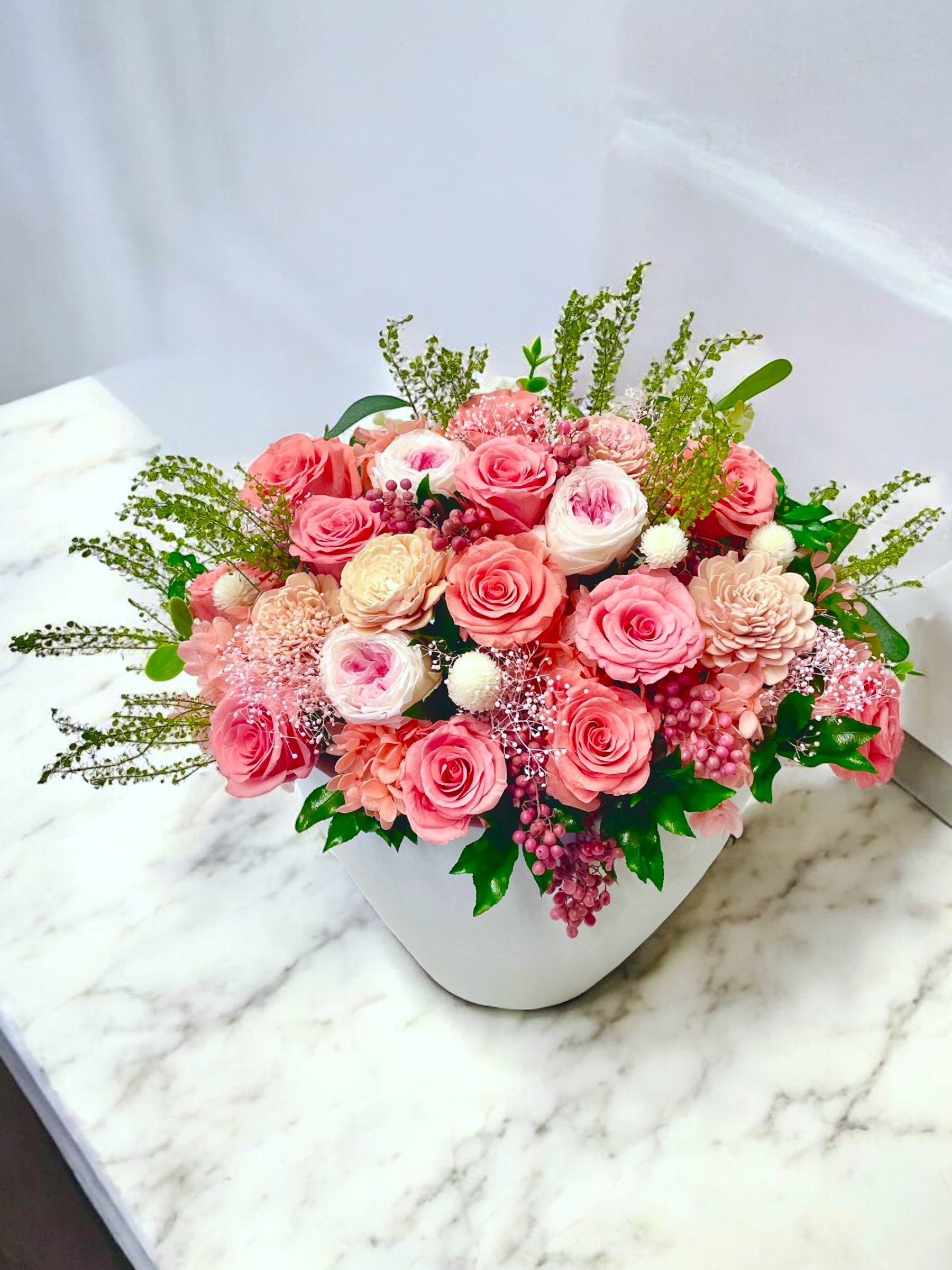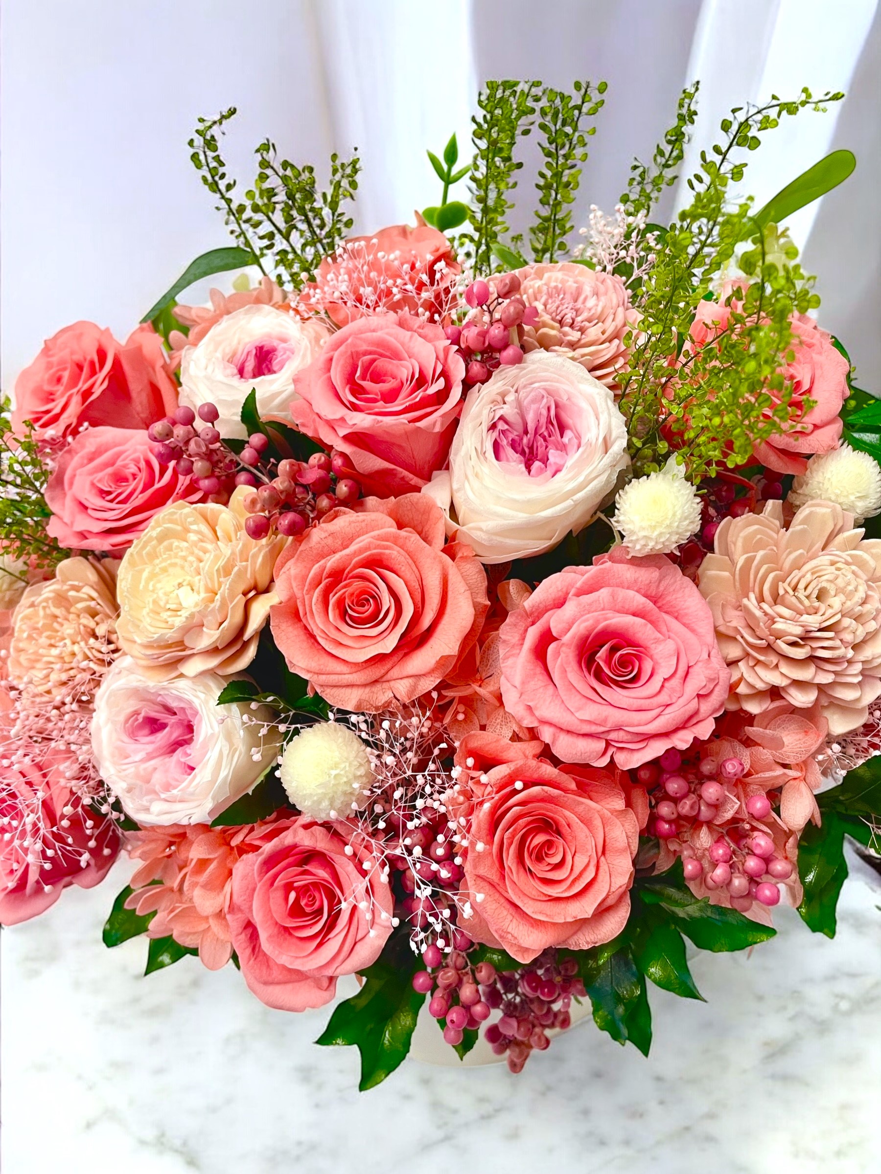 ■ コメント:生花に特殊な保存処理を施し、長期間飾れるよう加工したプリザーブド商品。