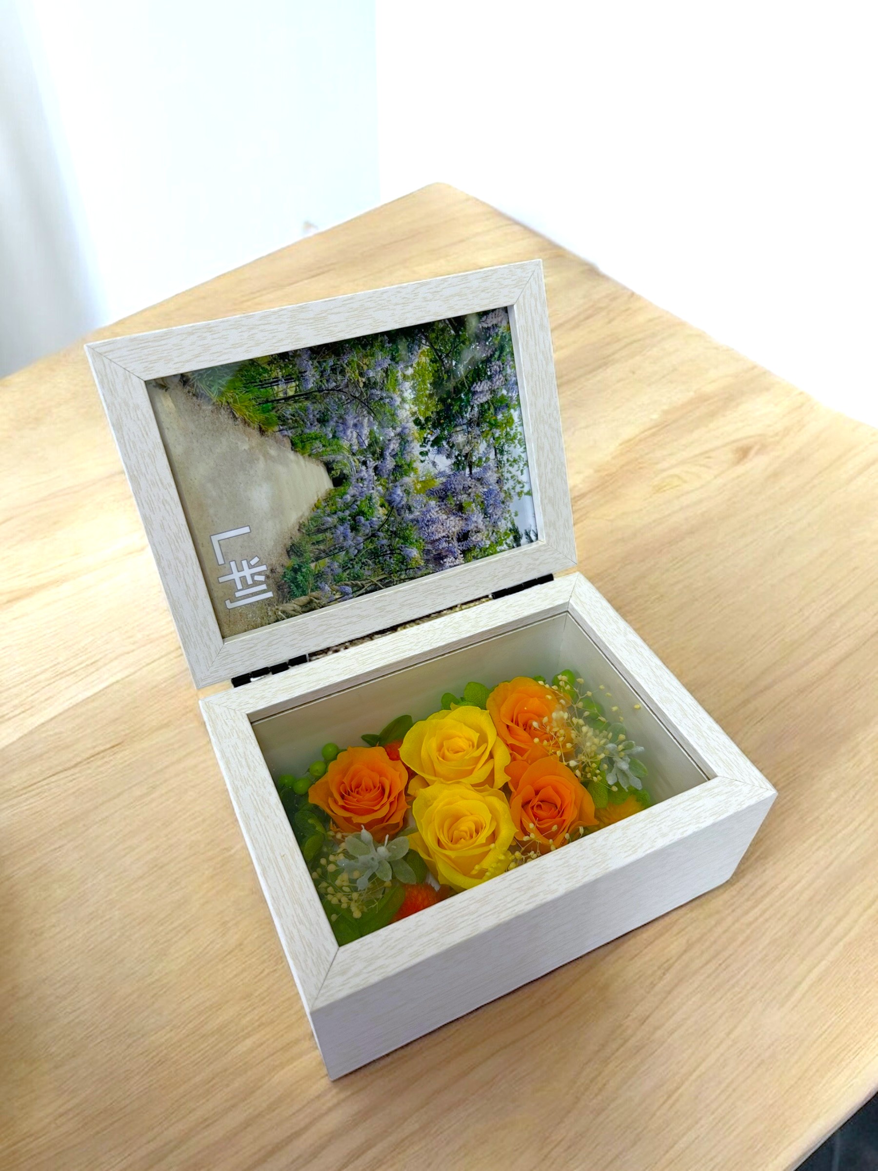 ■ コメント:生花に特殊な保存処理を施し、長期間飾れるよう加工したプリザーブド商品。
