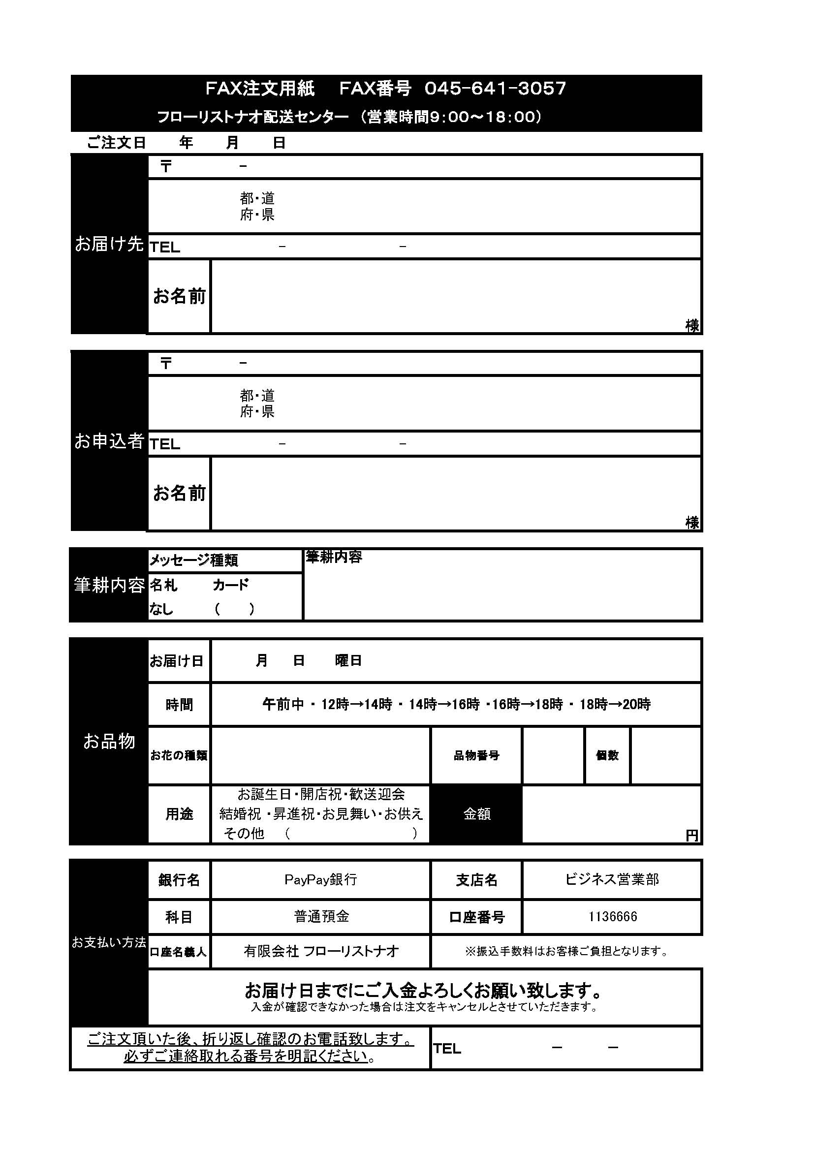 FAX:ご注文用紙