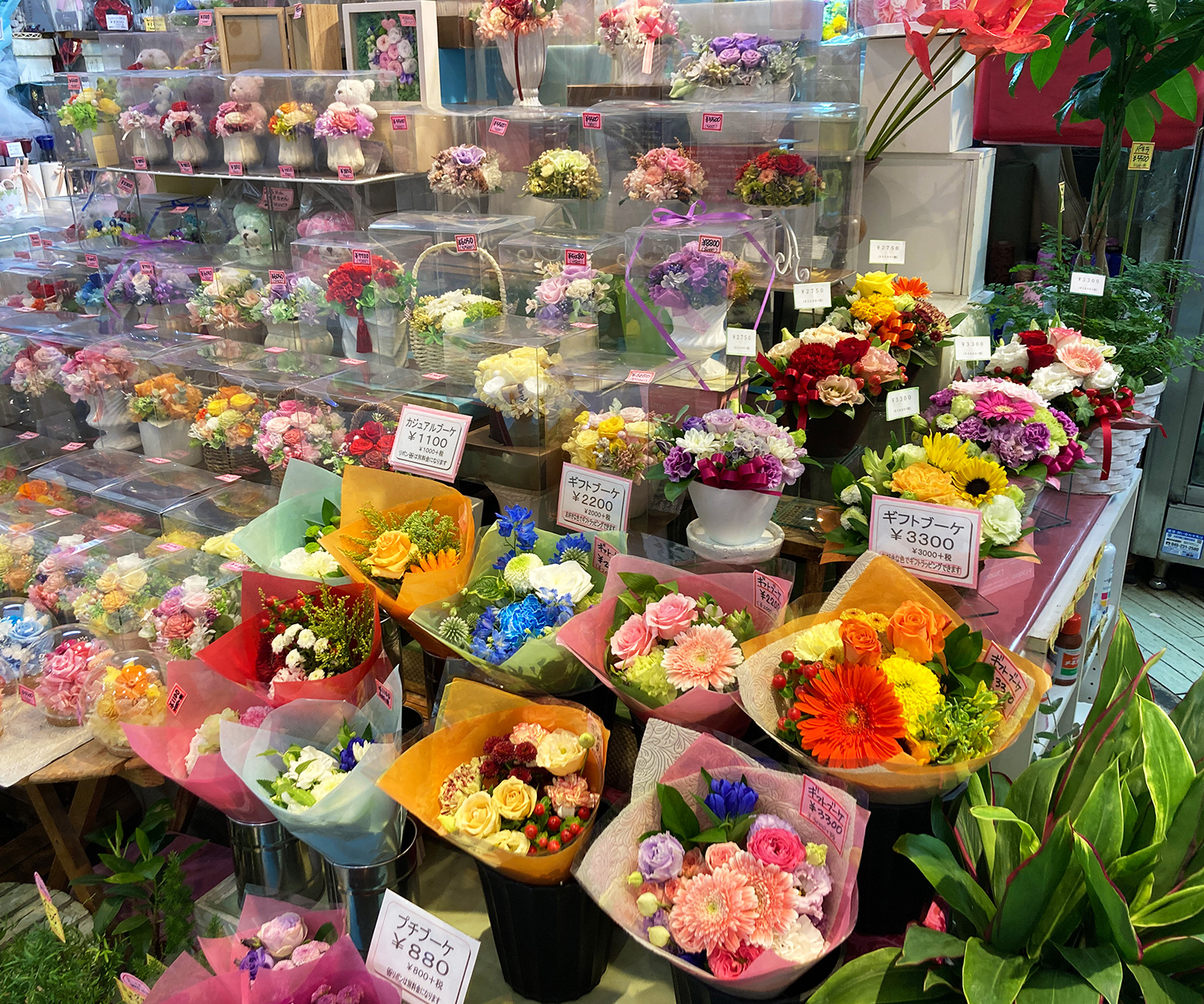 店頭販売、配達、作成、ホテル・レストラン花メンテナンス、仕入